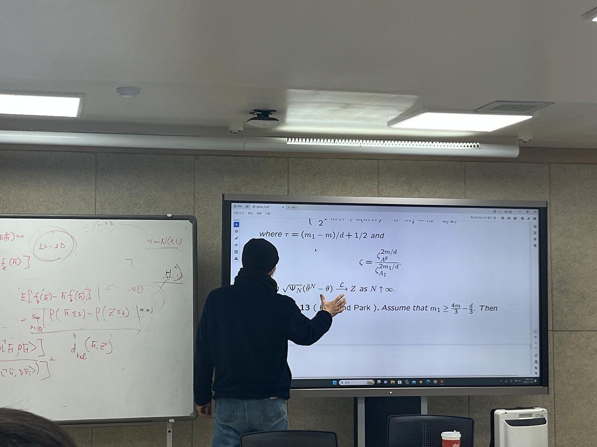 강연자인 데이터사이언스학부 김윤태 교수는 'Malliavin Calculus 기반의 통계적 추정 '을 주제로 포럼을 진행했습니다.