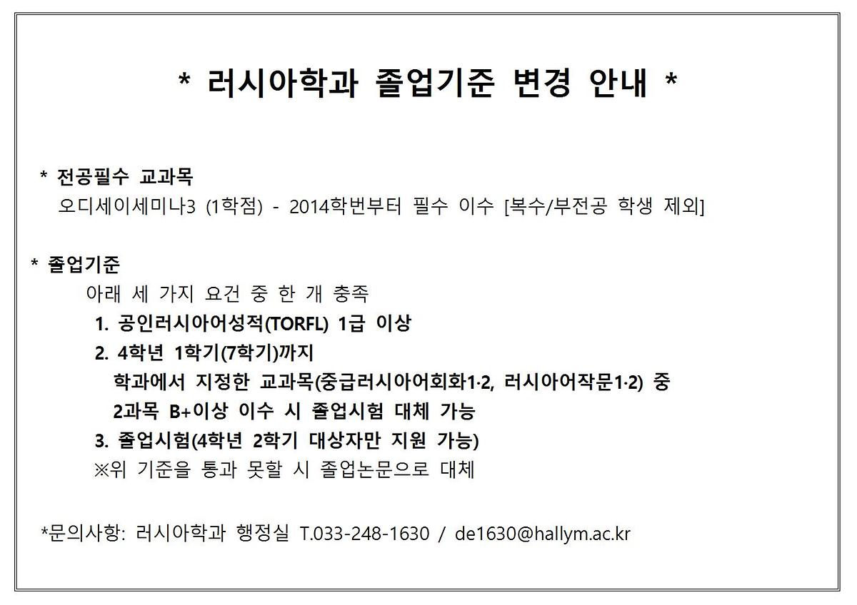 [필독]러시아학과 졸업기준 변경 안내